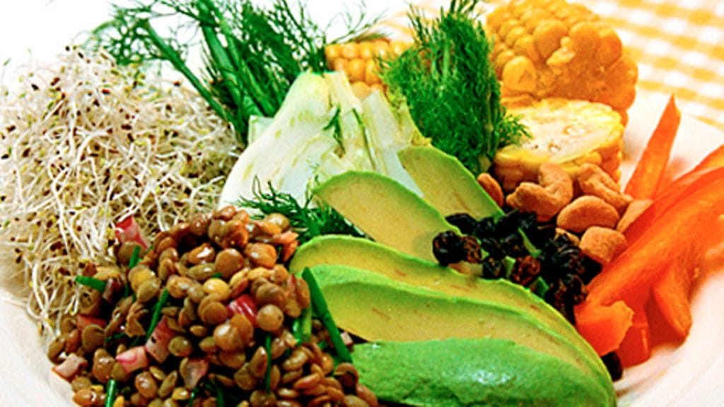 2. Suikaloi paprika, fenkoli ja avokado. Jaa maissit sopivankokoisiksi paloiksi. Asettele kaikki neljälle lautaselle tai isolle vadille. Ripottele päälle pähkinöitä ja rusinoita.