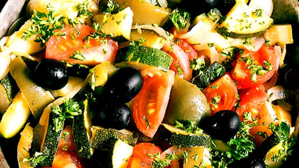 3. Anna hautua kannen alla n. 15 minuuttia. Ripottele päälle persiljaa ja oliiveja.