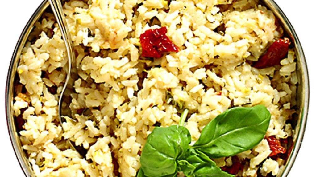 2. Lisää loput liemestä vähän kerrallaan samalla sekoittaen, keitä miedolla lämmöllä n. 25 minuuttia. Hienonna lähes kaikki aurinkokuivatut tomaatit, säästä muutama koristeluun.