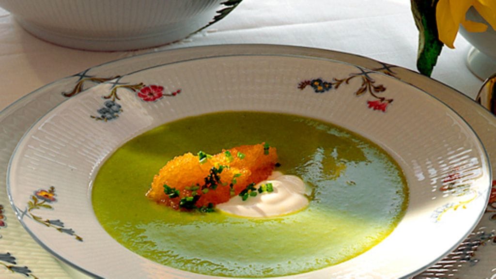 1. Kuori ja silppua salotit. Kuullota voissa keittokattilassa, älä ruskista. Sekoita joukkoon herneet, lisää vihannesliemi ja kuumenna kiehuvaksi. Anna kiehua hiljalleen 15 minuuttia.