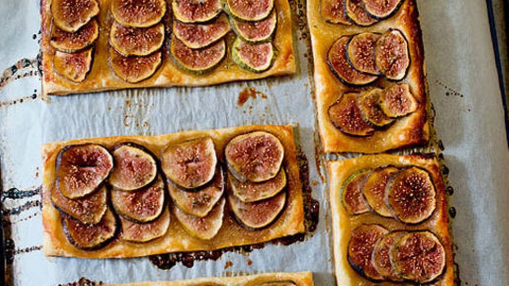 Aseta taikinalevyt leivinpellille leivinpaperin päälle. Viipaloi viikunat ja pane taikinan päälle. Nypi rosmariinin lehdet, hienonna ne ja ripottele viikunoille. Valuta päälle hunajaa ja paista 200 asteessa, kunnes pinta on saanut kunnolla väriä. Suikaloi vuohenjuusto leivonnaisen päälle ja tarjoa.