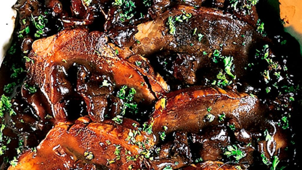1. Aseta kasslerviipaleet reunalliselle vadille. Sekoita marinadi ja kaada se lihan päälle. Peitä tuorekelmulla ja nosta vati jääkaappiin seuraavaan päivään asti.