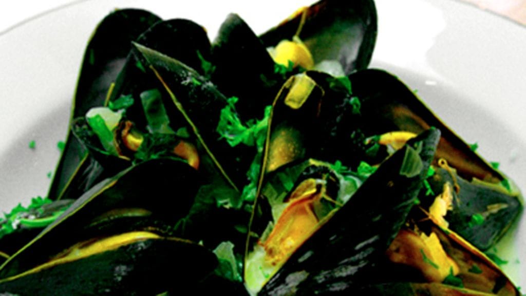 1. Puhdista ja harjaa simpukat juoksevan, kylmän veden alla. Heitä pois ne jotka eivät sulkeudu, kun kopautat niitä. Kuori salottisipulit ja hienonna ne sekä yrtit.