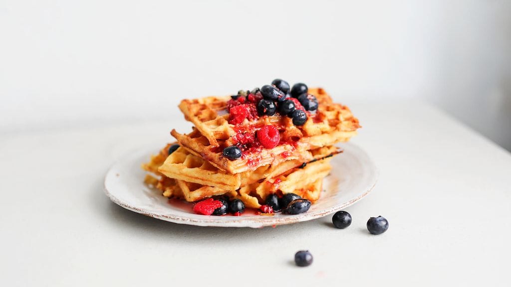 Sekoita marjat ja vaahterasiirappi kannussa ja murskaa marjojen rakennetta hieman lusikalla. Kaada valmiiden vohveleiden päälle.