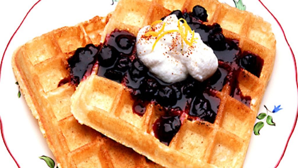 3. Vatkaa kerma ja tarjoile vastapaistetut vohvelit kermavaahdon ja hillon kera.