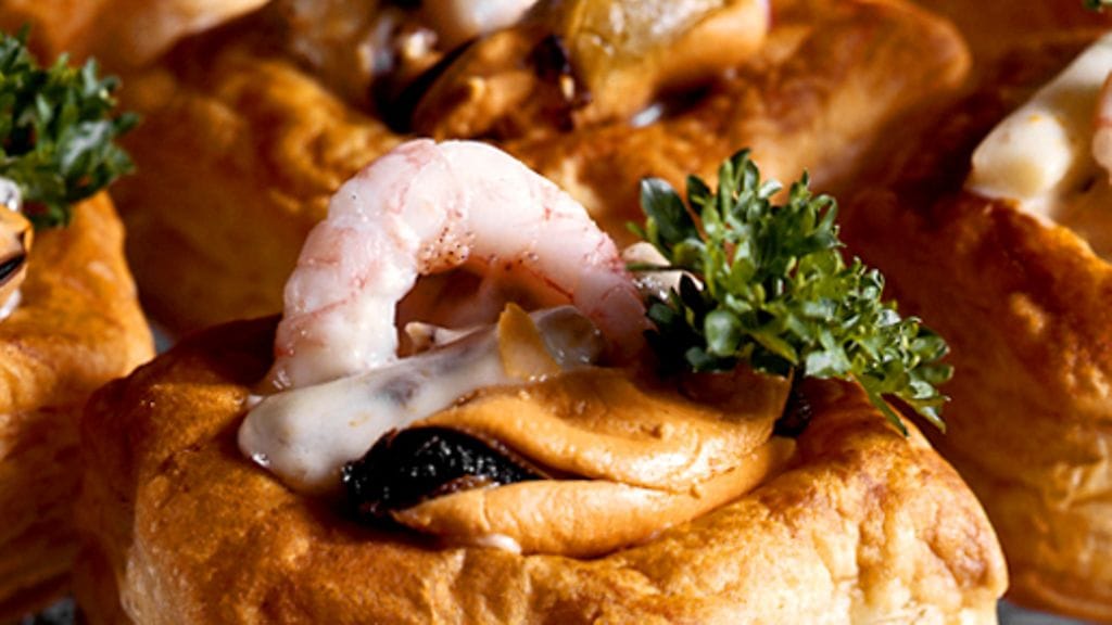 4. Täytä pasteijat muhennoksella, koristele persiljalla.