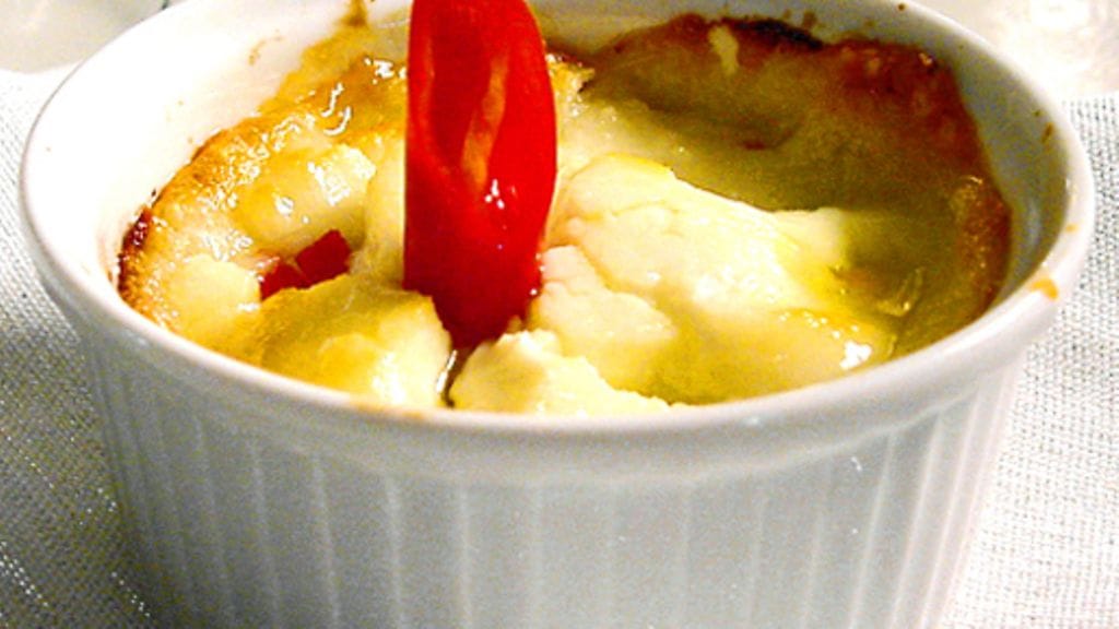 2. Leikkaa toinen chili neljäksi palaksi. Pohjusta neljä voideltua annosvuokaa hienonnetulla rucolalla. Jaa vuokiin päärynä-chili ja aseta chèvre-viipale jokaisen annoksen päälle, työnnä viipaleen keskelle chilipala. Gratinoi 10 minuuttia 220-asteisessa uunissa. Juuston pitää hieman sulaa ja alkaa saa kullanruskeaa väriä.