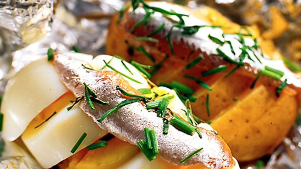 2. Pane päälle anjovisfileet ja voinokare. Hienonna punasipuli tai ruohosipuli ja ripottele pinnalle.