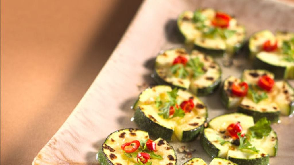 Leikkaa pestyt kesäkurpitsat puolen sentin paksuisiksi viipaleiksi. Jos haluat tehdä viipaleista kukkia, vedä veitsellä pitkittäiset lovet kurpitsan pintaan ennen viipalointia.