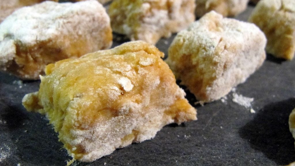Olen viime aikoina miettinyt juureksia ja sitä, voisiko niitä tehdä kaikilla tavoilla, joilla perunoita kokataan. Tottakai se onnistuu, mutta olisiko joukossa joku napakymppi? Röstiä, hasselbackaa, frittejä, linnaperunat jne. Aloitin bataatista ja takuuvarmasta hyvästä, gnoccheista.