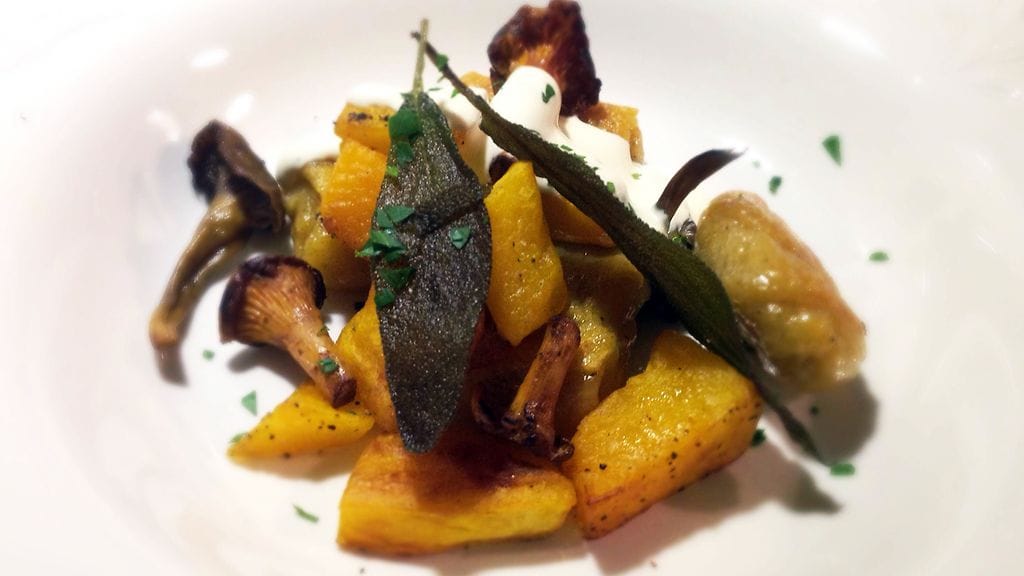 Gnoccheja kannattaa tehdä kerralla suuri annos. Kaiken, mikä ei kulu kerralla, voi pakastaa. Tässä erinomainen ohje kurpitsa-gnoccheille, joita oli jäänyt jäljelle tästä kerrasta. Perusidean sain vuosia sitten Ravinteli Berthassa ja olen kokkaillut vastaavaa muutaman kerran. Gnocchien tekeminen vie aikaa, mutta jos niitä löytyy pakkasesta, tämä on helppoa ja nopeaa syysruokaa. Kauden aineksista lautaselle päätyy paahdettua kurpitsaa, kurpitsa-gnoccheja, paistettuja sieniä ja salvianlehtiä sekä nokare ranskankermaa. Todella maukasta. Ja upeaa tarjottavaa lihattomana lokakuuna.