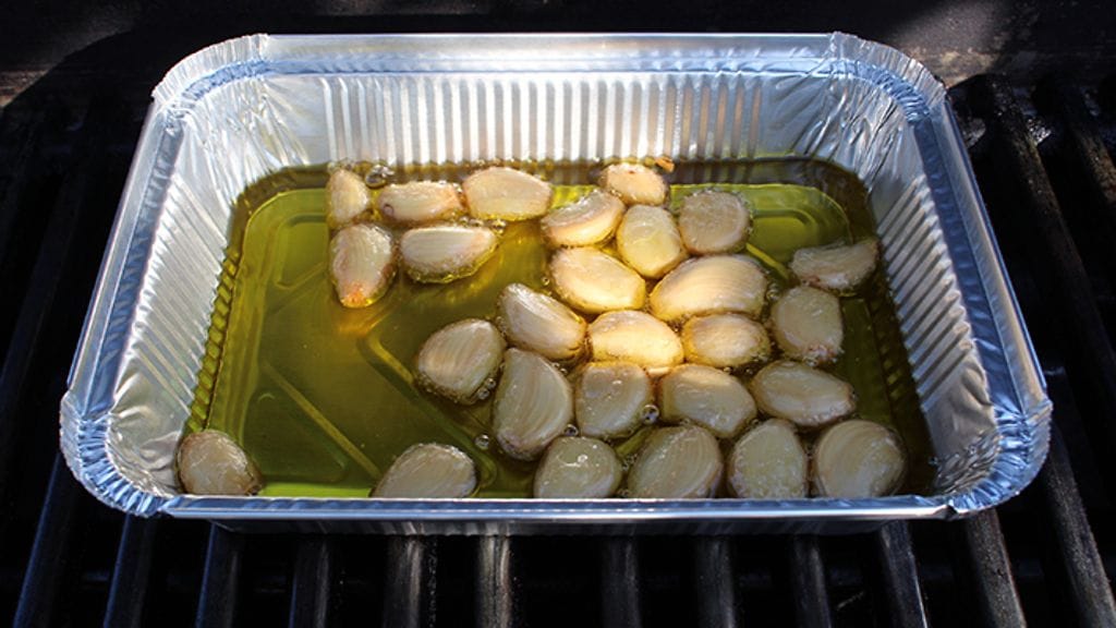 VINKKI 2! Homma toimii yllättävän hyvin ja kevyemmin niin, että noukkii kypsät valkosipulinkynnet öljystä, soseuttaa ne ja jatkaa loppuun ilman öljyä. Kantsii silloin ottaa sitruksinen öljy talteen muita kokkailuja varten.