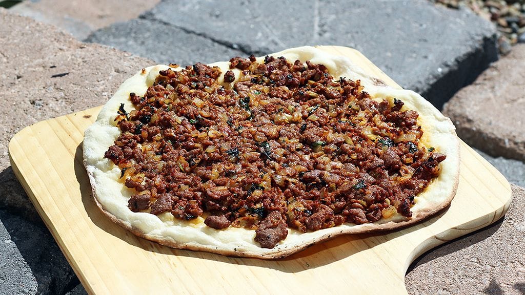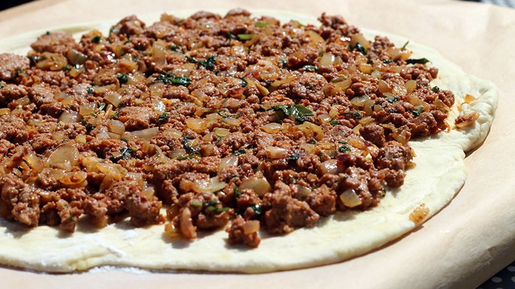 Turkkilaiset maahanmuuttajat ovat mokanneet pahasti. Ainakin kebab-pizzerioiden pitäjät. Tarjoavat meille surkeaa alvitonta pizzaa, vaikka omilta kotikonnuilta löytyisi ties mitä herkkuja. Pahoittelen yleistystä, mutta niin se turhan usein menee. Törmäsin taannoin turkkilaiseen pizzaan, lahmacuniin, ja päätin tehdä sitä hetimmiten. No enpä tehnyt, kun unohdin, mutta muistin sen taas.