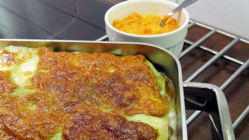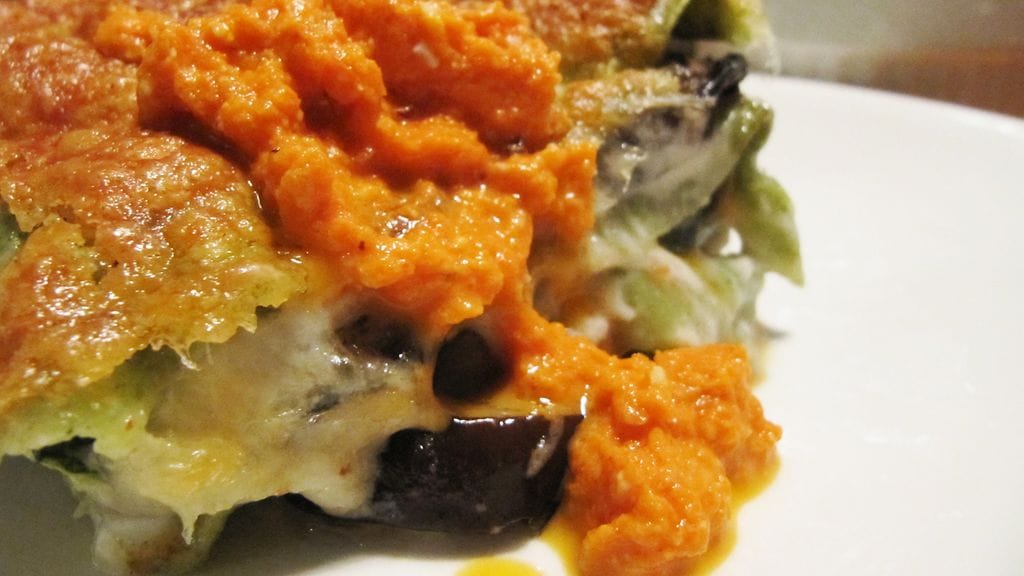 Munakoiso-kesäkurpitsalasagnea paprikapestolla