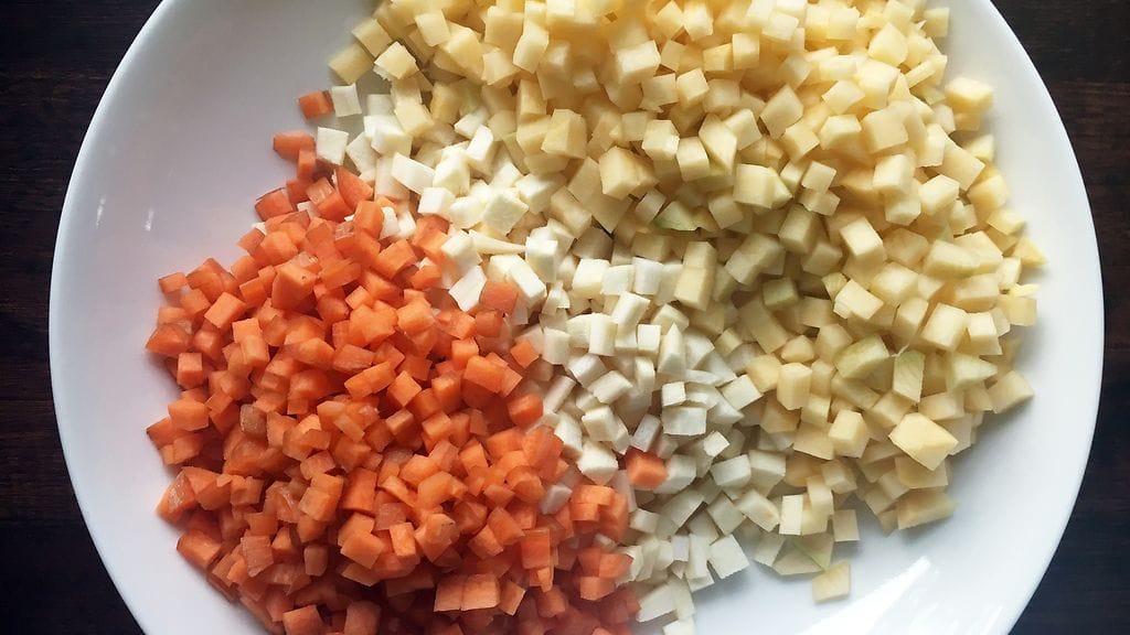 VINKKI! Voit tietenkin vaihtaa juurekset toisiin. Kokeile vaikka keltajuurta, bataattia ja juuriselleriä.