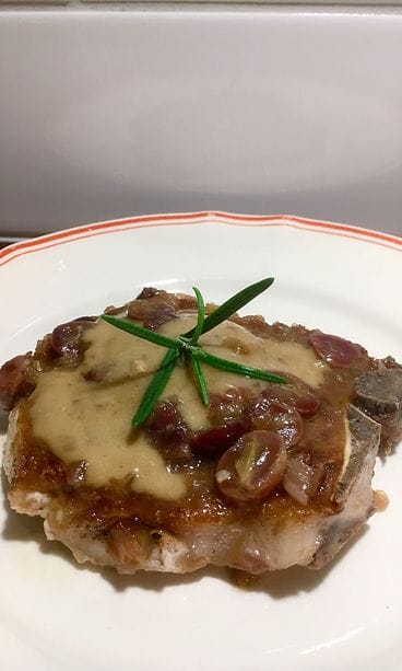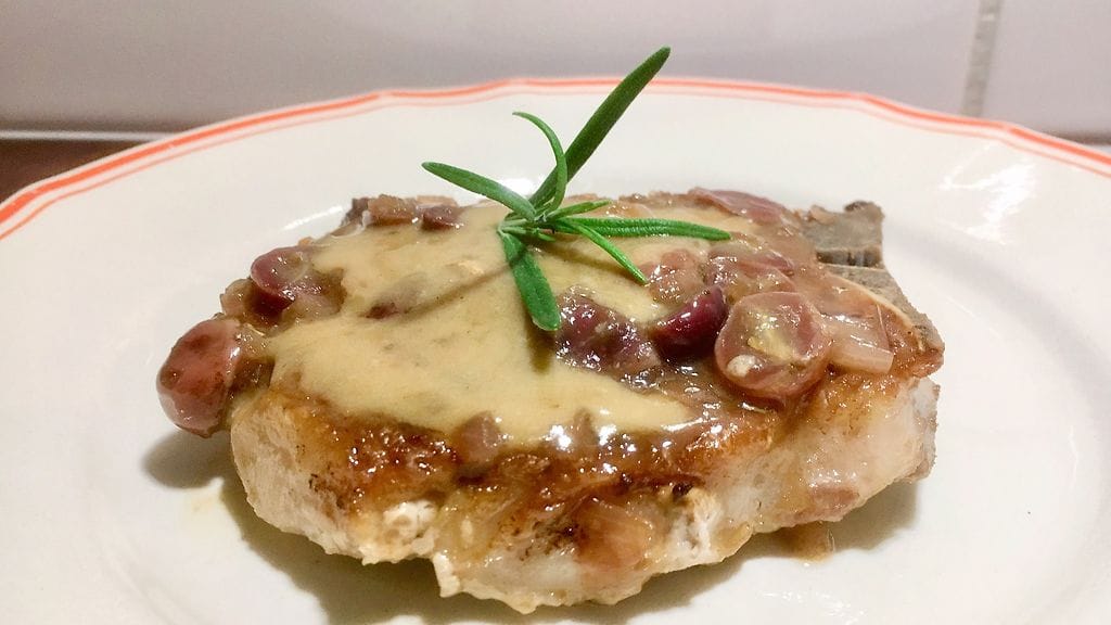 Porsaankyljykset sinappisella viinirypälekastikkeella