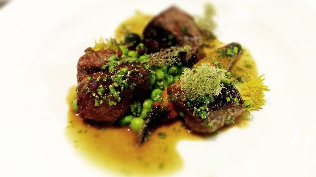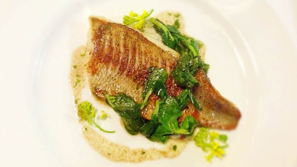 Alkuruokana eteemme tuodaan keväisiä vihanneksia, jotka olivat realiteetit huomioiden osittain kärrätty ulkomailta. Retiisiä, naurista ja kurkkua dipattiin villiruusu-tillimajoneesiin. Yksinkertaisen kikkailematonta, mutta näin keväällä kesän maukkaita ensipuraisuja. Dippi antoi viitettä sille, mitä tuleman piti. Ei makunystyröitä räjäyttäviä makuja, mutta uutuudessaan kaikkea muuta kuin aiemmin maistellut. Illallisen viinit olivat Ranska-painotteisia ja vähintäänkin luomuja ellei jopa vanhoja perinteitä kunnioittavia aitoviinejä. Napakoita osumia ruoan kanssa. Viinit näkyvät alimmaisessa kuvassa.