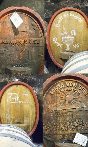 Turnee alkoi prameimmaista päästä, Weingut Schloss Westerhausin tiluksilta Ingelheimista. Romanttisen jylhä linna sijaitsee rinteen harjalla tarjoten aitiopaikan alhaalla siintävän kaupungin ihasteluun. Opelin perhe hankki 1500-1600-luvuilla rakennetun linnakkeen 1900 ja on elänyt mestoilla jo neljän sukupolven ajan. Nykyisin tilaa emännöi kreivitär Ivonne von Schönburg-Glachau miehensä Johanneksen hoitaessa viinipuolta. Oishan se kivaa, jos vaimon isoisoisä olis keksinyt Opelin, mutta ihan jees näinkin. Kotini on linnani ja just hankin mökille viiniköynnöksen taimen.