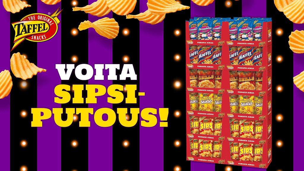 Kaikkien arvontaan osallistuneiden kesken arvotaan viikoittain Taffel Sipsi-Putous. Yksi palkinto sisältää yhteensä 168 Taffel-sipsipussia, eli yksi pussi viikon jokaiselle tunnille! Viikkopalkinnot arvotaan jokaisen viikon maanantaina 22. lokakuuta alkaen. Voittajiin ollaan yhteydessä henkilökohtaisesti.